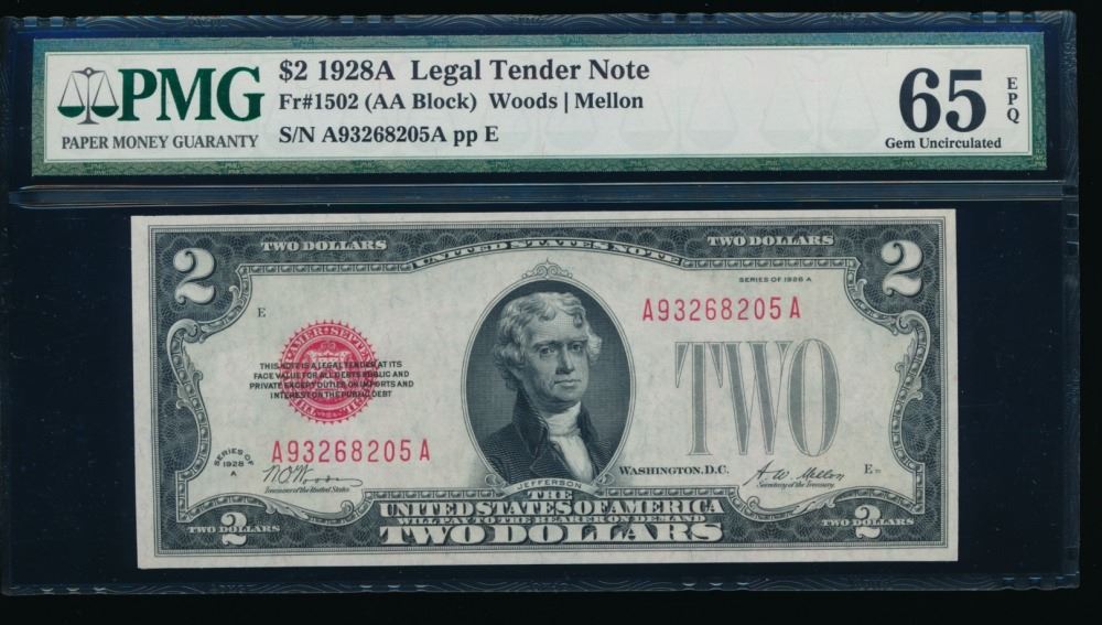 One 1928A $2 Legal Tender Note PMG 65EPQ.