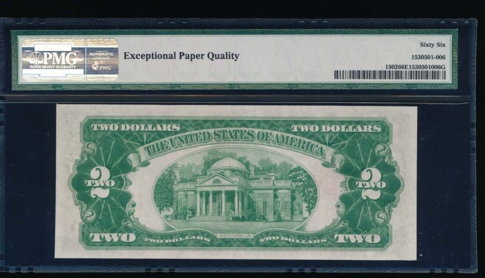 One 1928A $2 Legal Tender Note PMG 66EPQ.