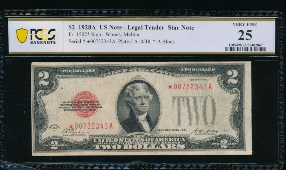 One 1928A $2 STAR Legal Tender Note PCGS 25.