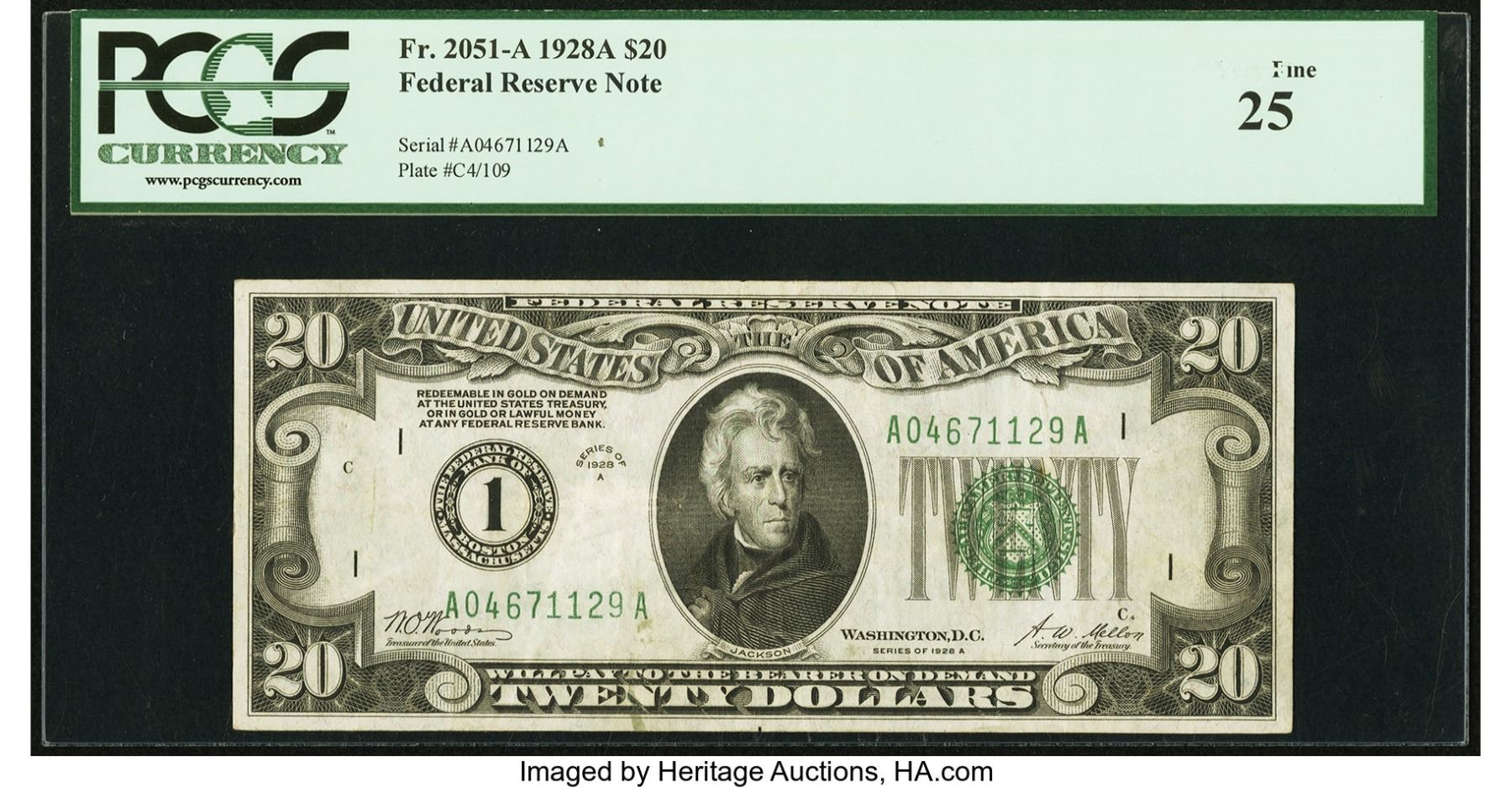 One 1928A $20 Boston Federal Reserve Note PCGS 25.