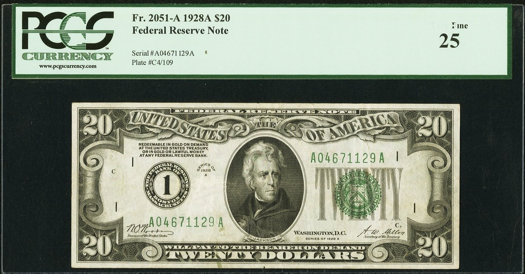One 1928A $20 Boston Federal Reserve Note PCGS 25.
