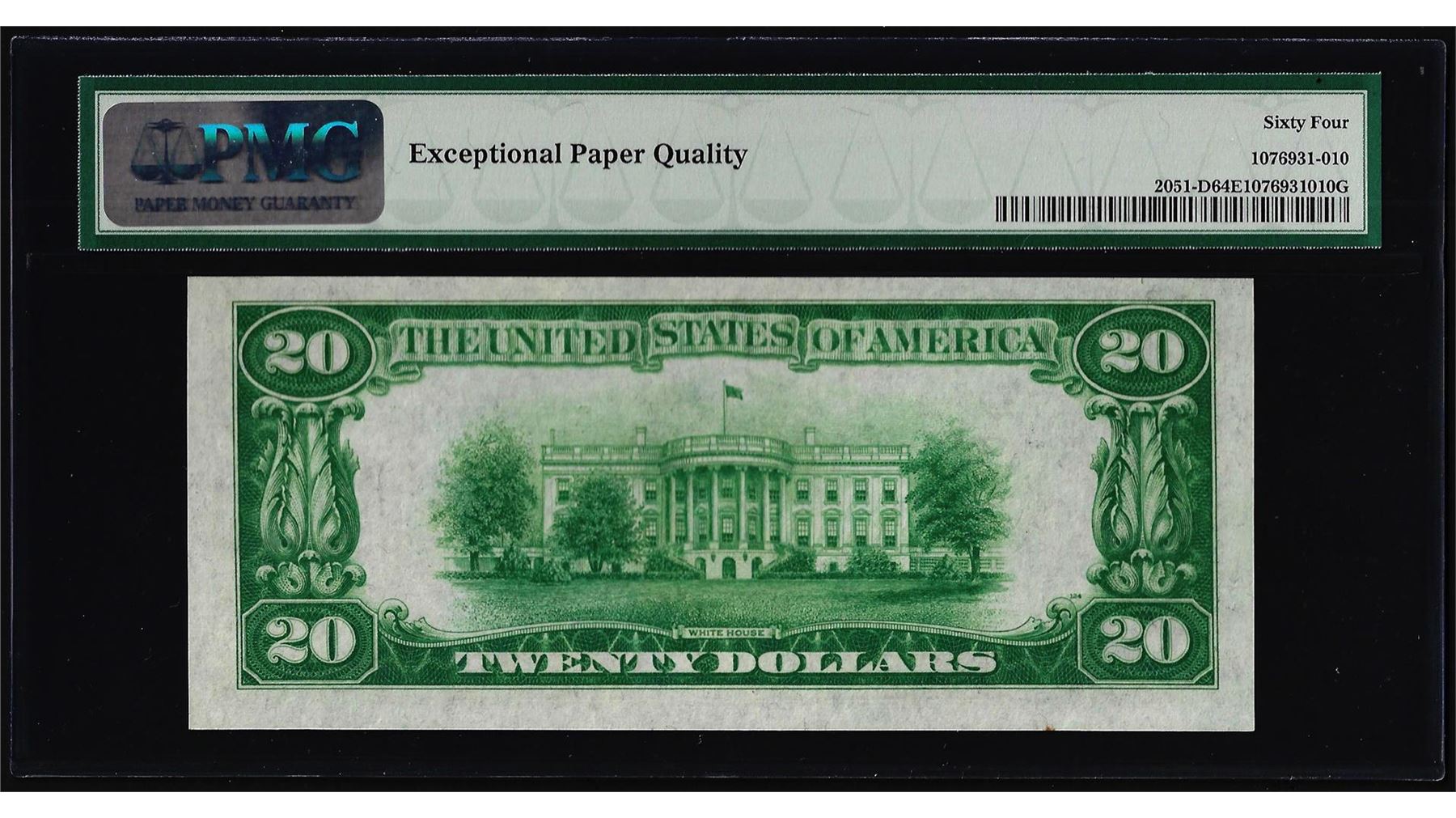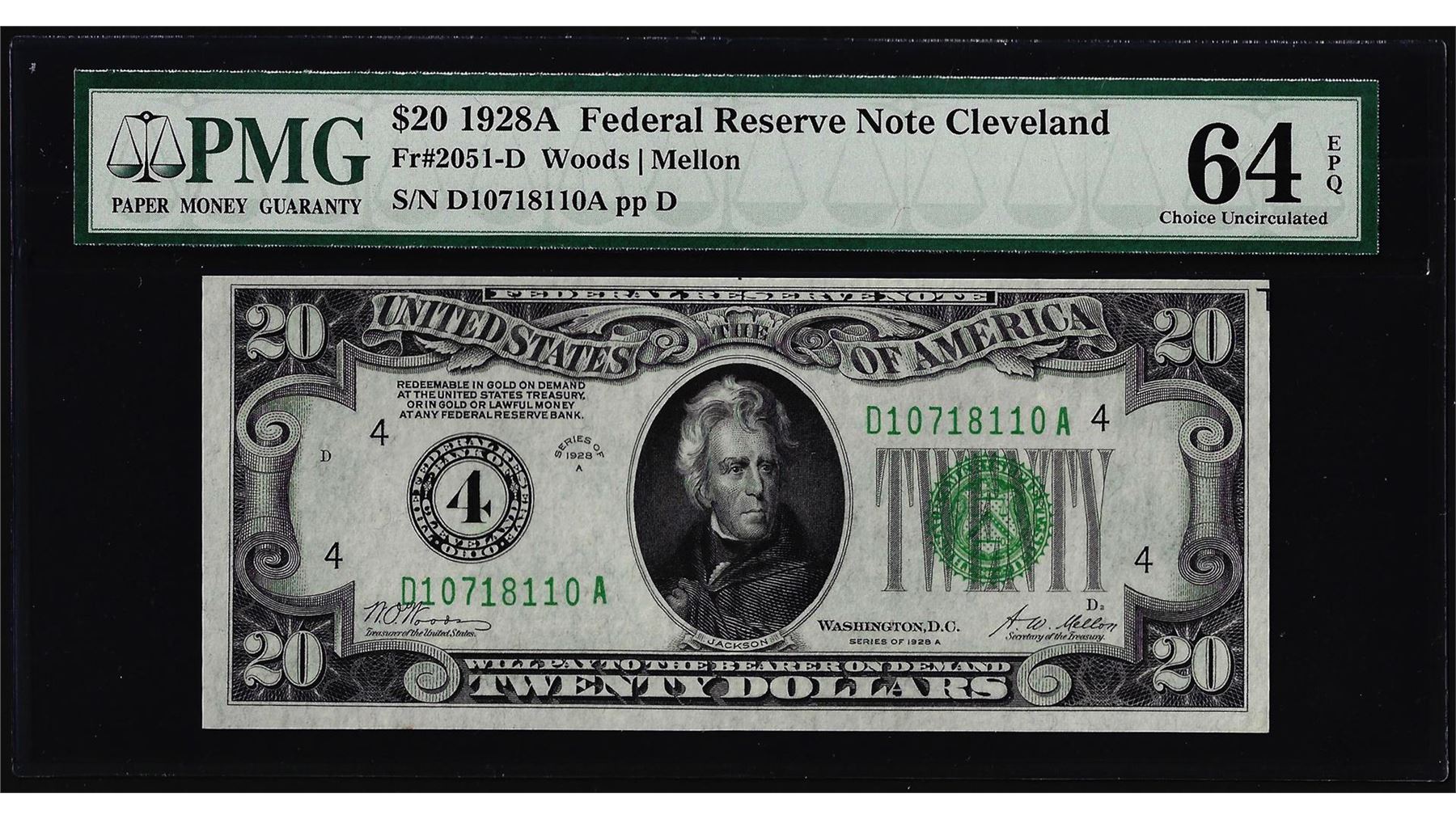 1928A $20 Federal Reserve Note Cleveland Fr.2051-D PMG Choice Uncirculated 64EPQ