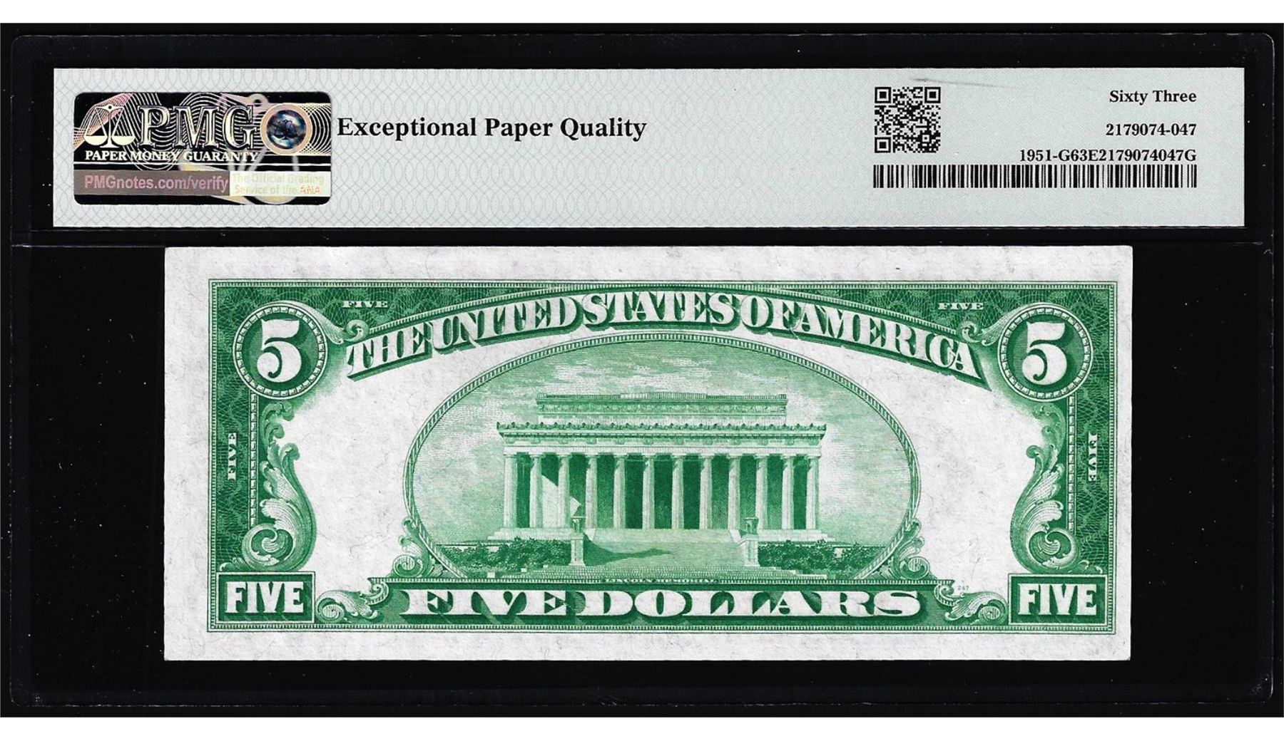 One 1928A $5 Federal Reserve Note Chicago Fr.1951-G PMG Choice Uncirculated 63EPQ. PMG Certified.