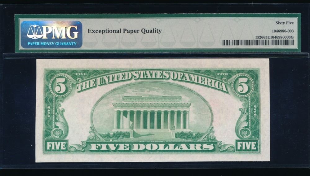 One 1928A $5 Legal Tender Note PMG 65EPQ.