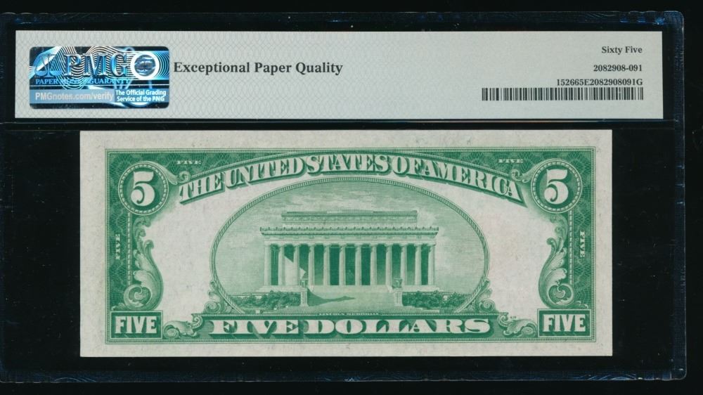 One 1928A $5 Legal Tender Note PMG 65EPQ.