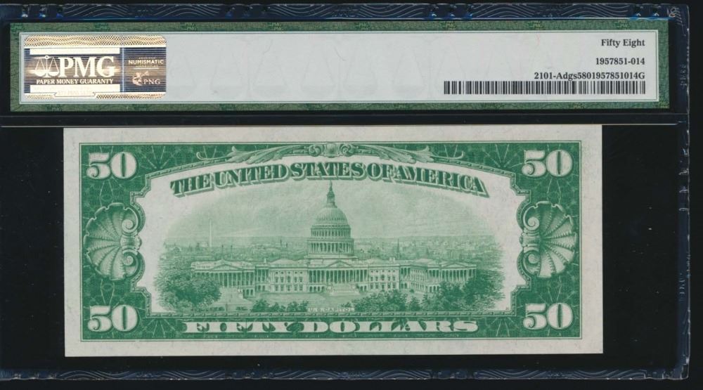 One 1928A $50 Boston Federal Reserve Note PMG 58.