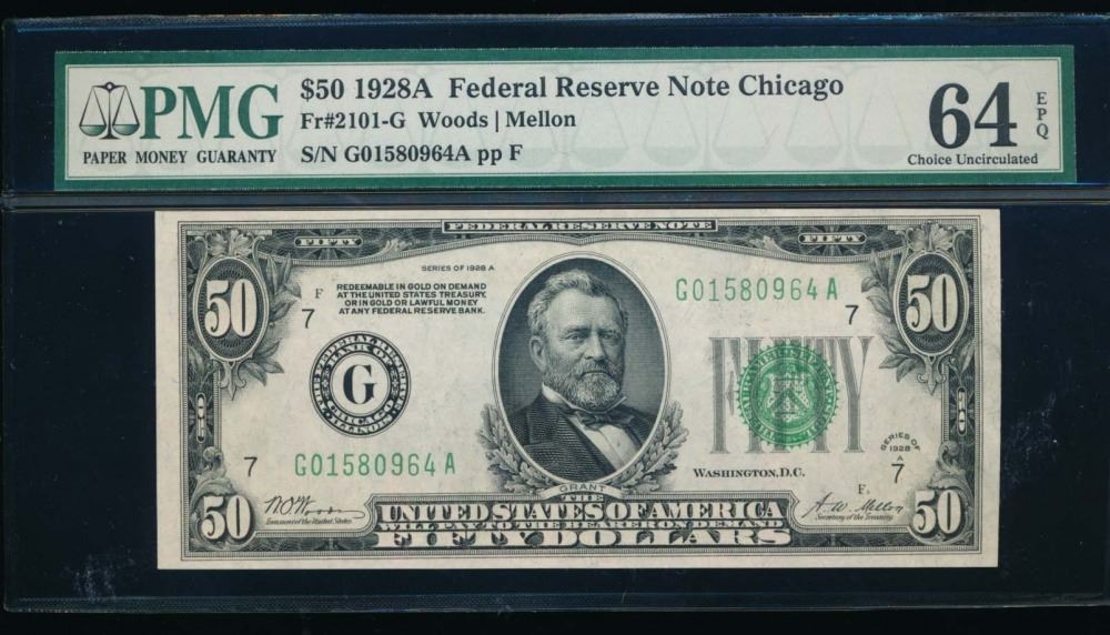 One 1928A $50 Chicago Federal Reserve Note PMG 64EPQ.