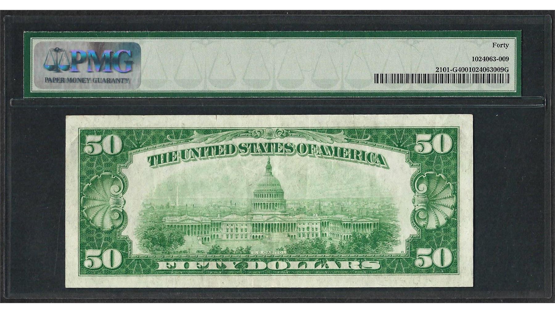 1928A $50 Federal Reserve Note Chicago Fr.2101-G PMG Extremely Fine 40