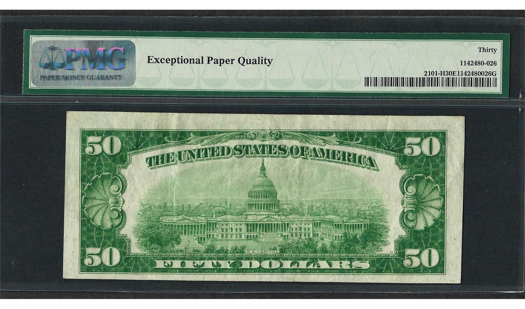 One 1928A $50 Federal Reserve Note St. Louis Fr.2101-H PMG Very Fine 30EPQ. PMG Certified.