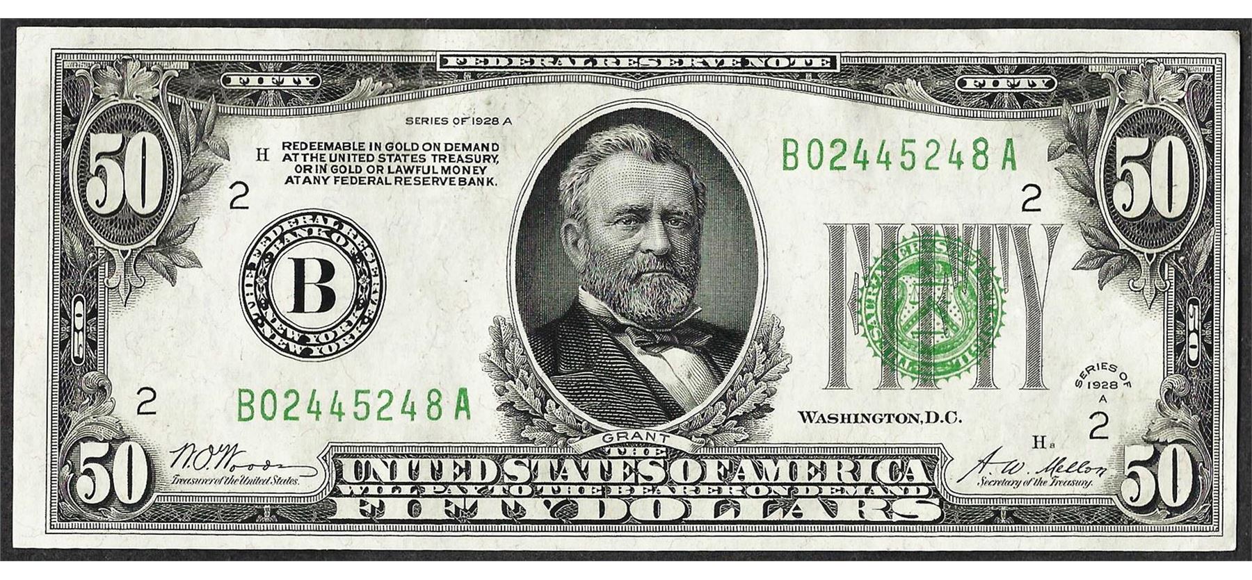 One 1928A $50 Federal Reserve Note.