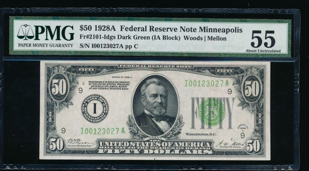 One 1928A $50 Minneapolis Federal Reserve Note PMG 55.