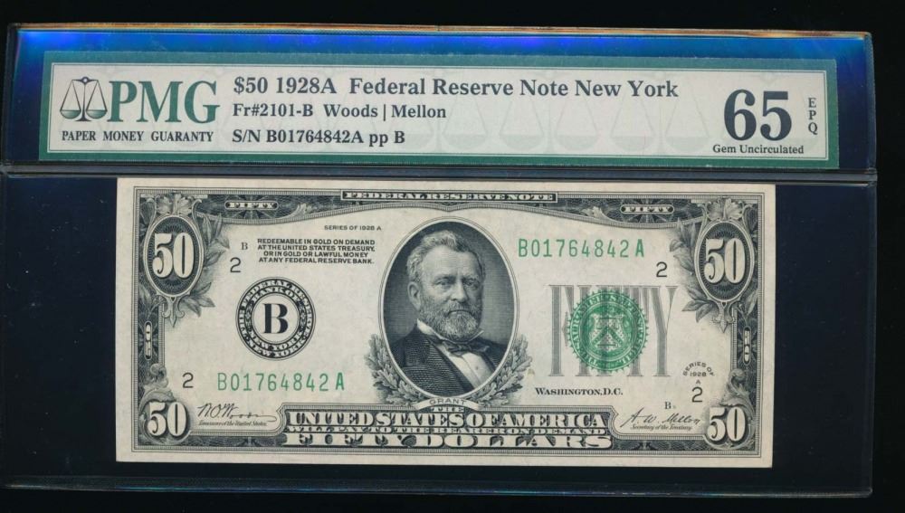 One 1928A $50 New York Federal Reserve Note PMG 65EPQ.