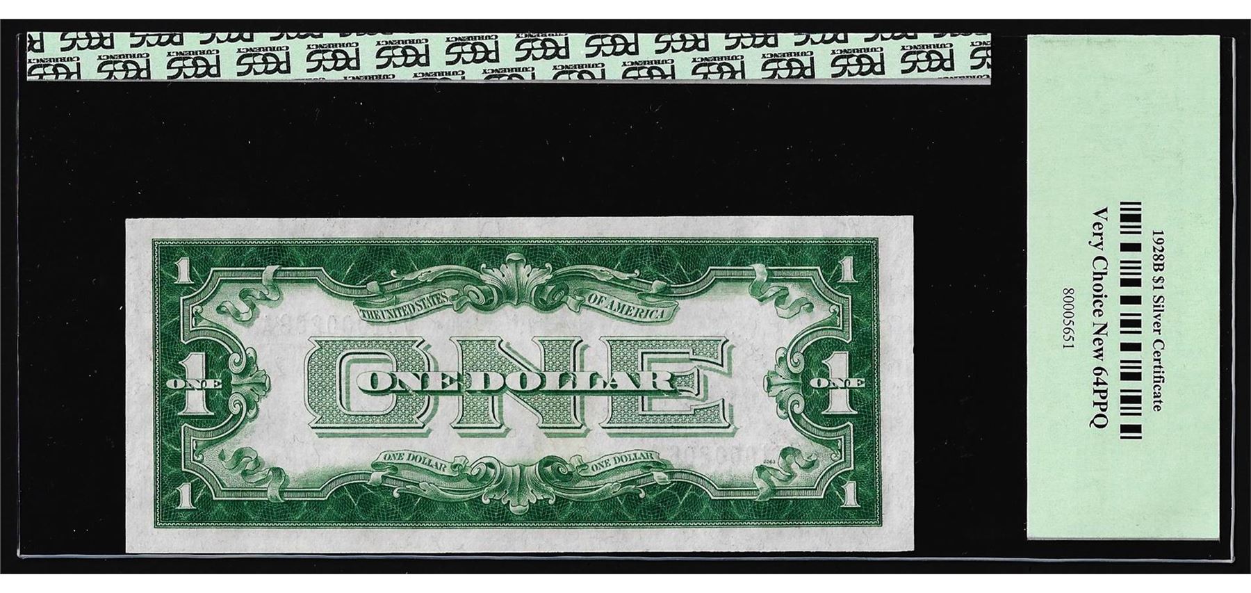 One 1928B $1 Funnyback Silver Certificate Note Fr.1602 PCGS Very Choice New 64PPQ. PCGS Graded.