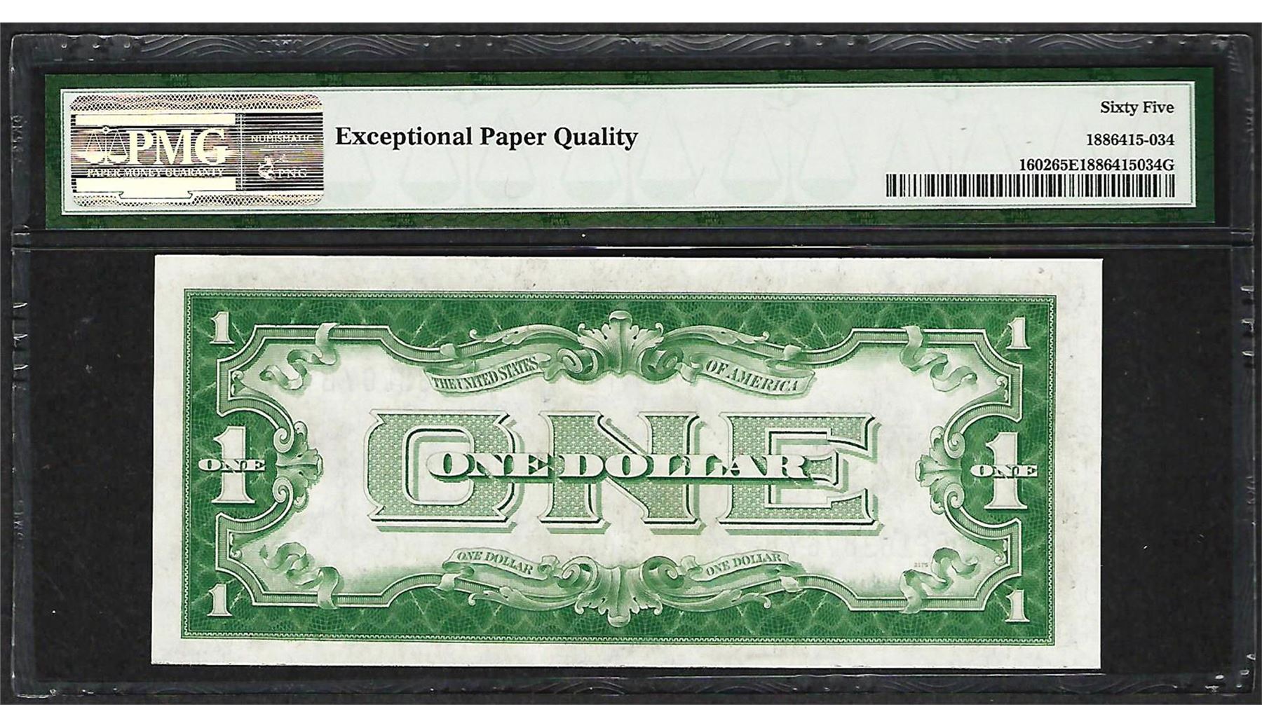 One 1928B $1 Funnyback Silver Certificate Note Fr.1602 PMG Gem Uncirculated 65EPQ. PMG Certified.