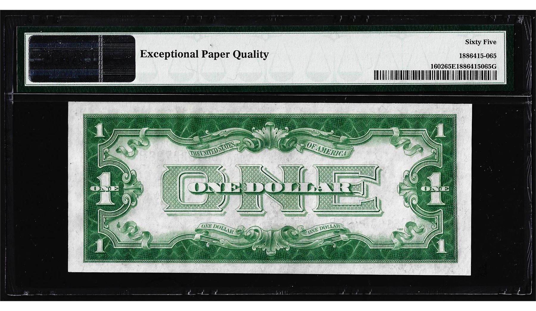 One 1928B $1 Funnyback Silver Certificate Note Fr.1602 PMG Gem Uncirculated 65EPQ. PMG Certified.