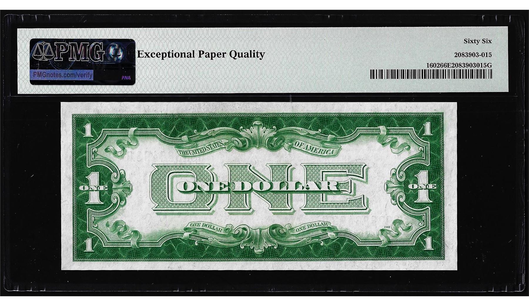 One 1928B $1 Funnyback Silver Certificate Note Fr.1602 PMG Gem Uncirculated 66EPQ. PMG Certified.