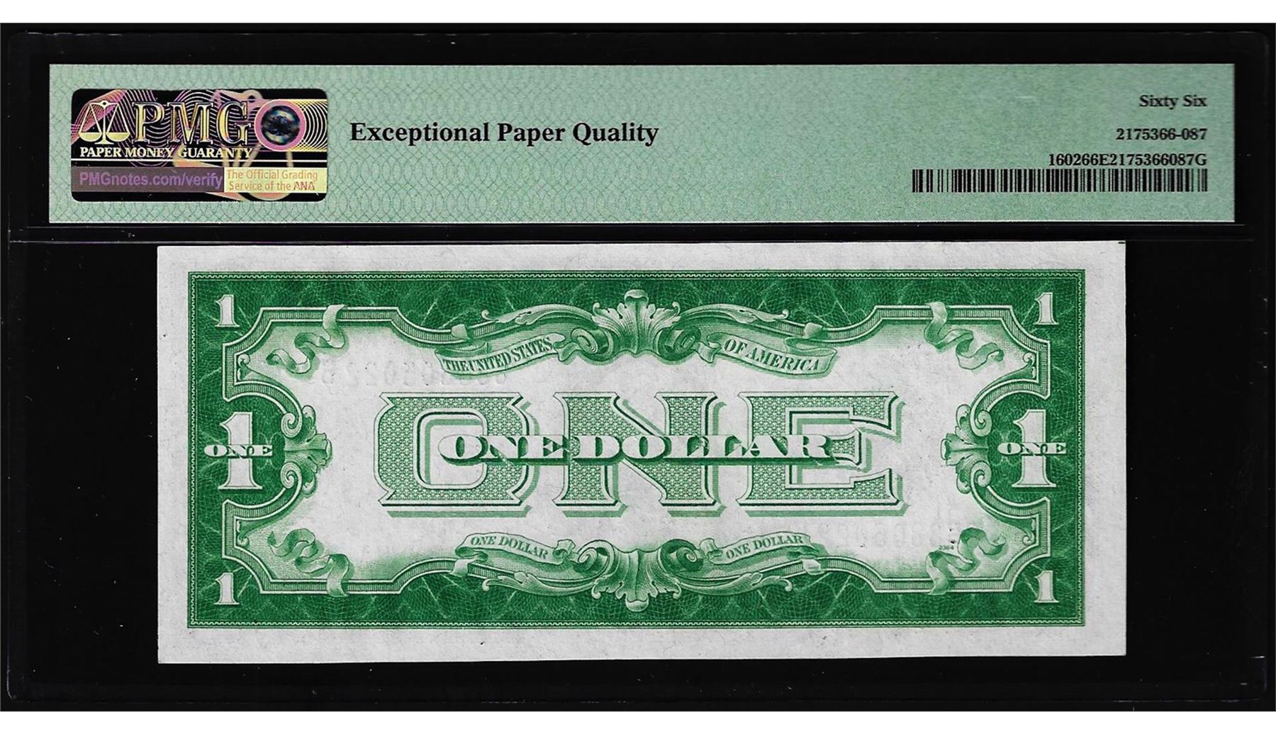 One 1928B $1 Funnyback Silver Certificate Note Fr.1602 PMG Gem Uncirculated 66EPQ. PMG Certified.