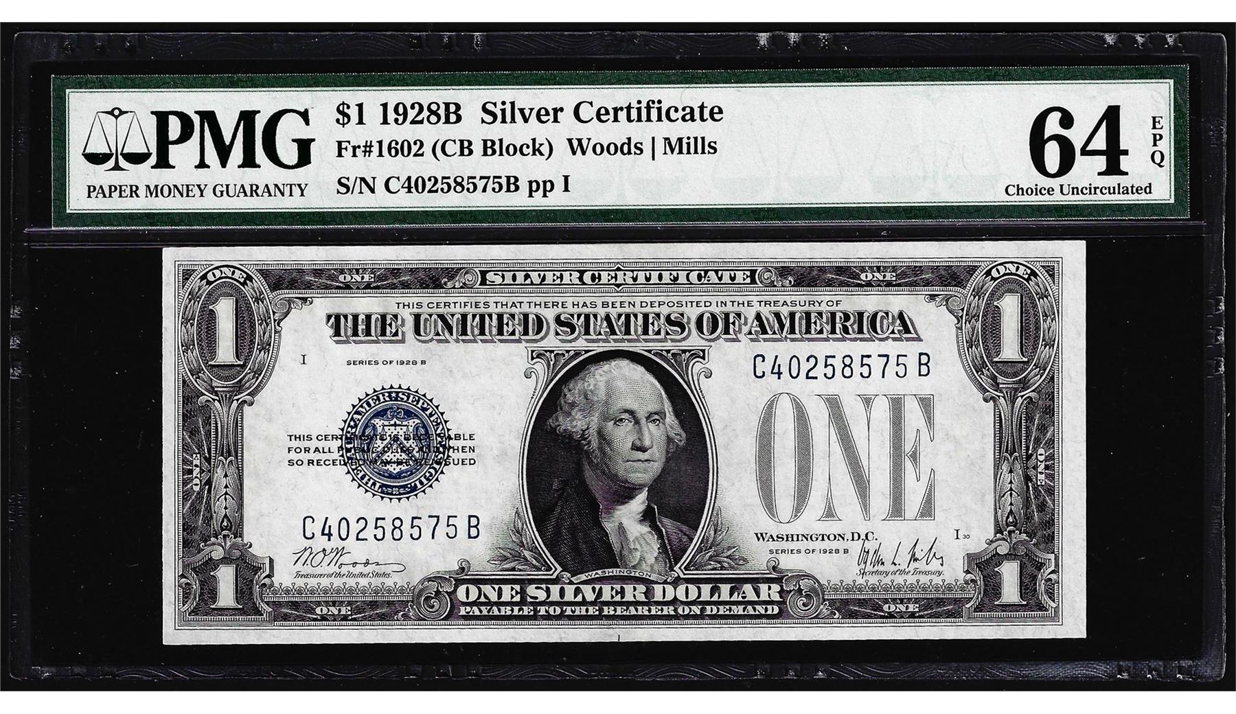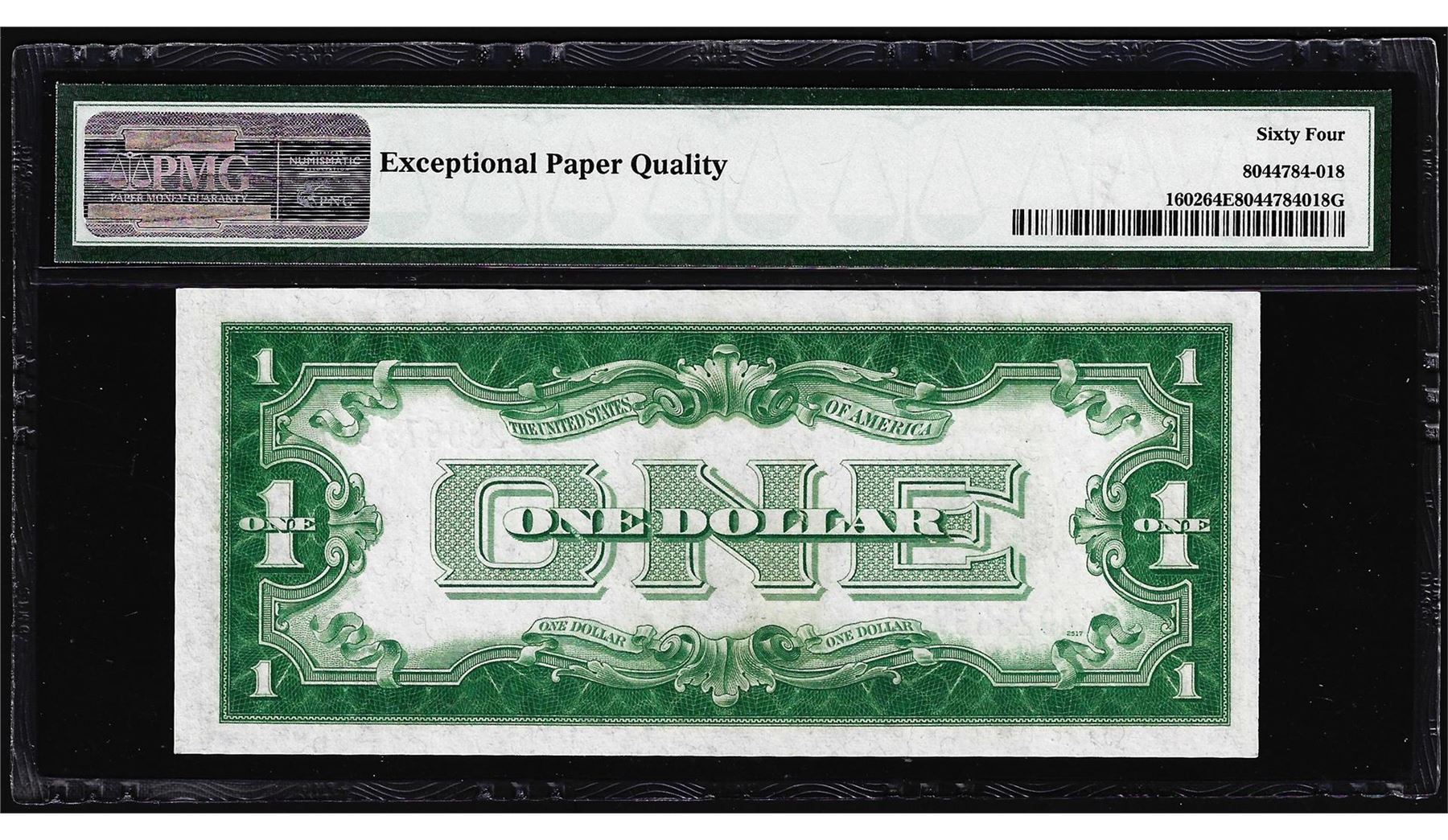 One 1928B $1 Funnyback Silver Certificate Note PMG Choice Uncirculated 64EPQ. PMG Certified.