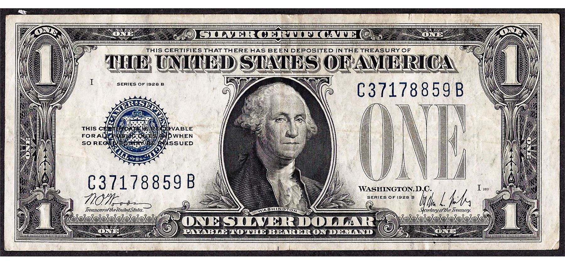 One 1928B $1 Funnyback Silver Certificate Notes.