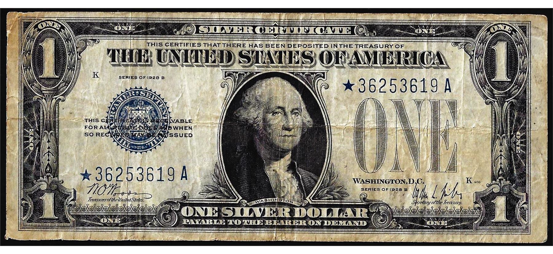 One 1928B $1 Funnyback Silver Certificate Star Note.