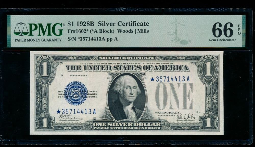 One 1928B $1 STAR Silver Certificate PMG 66EPQ.