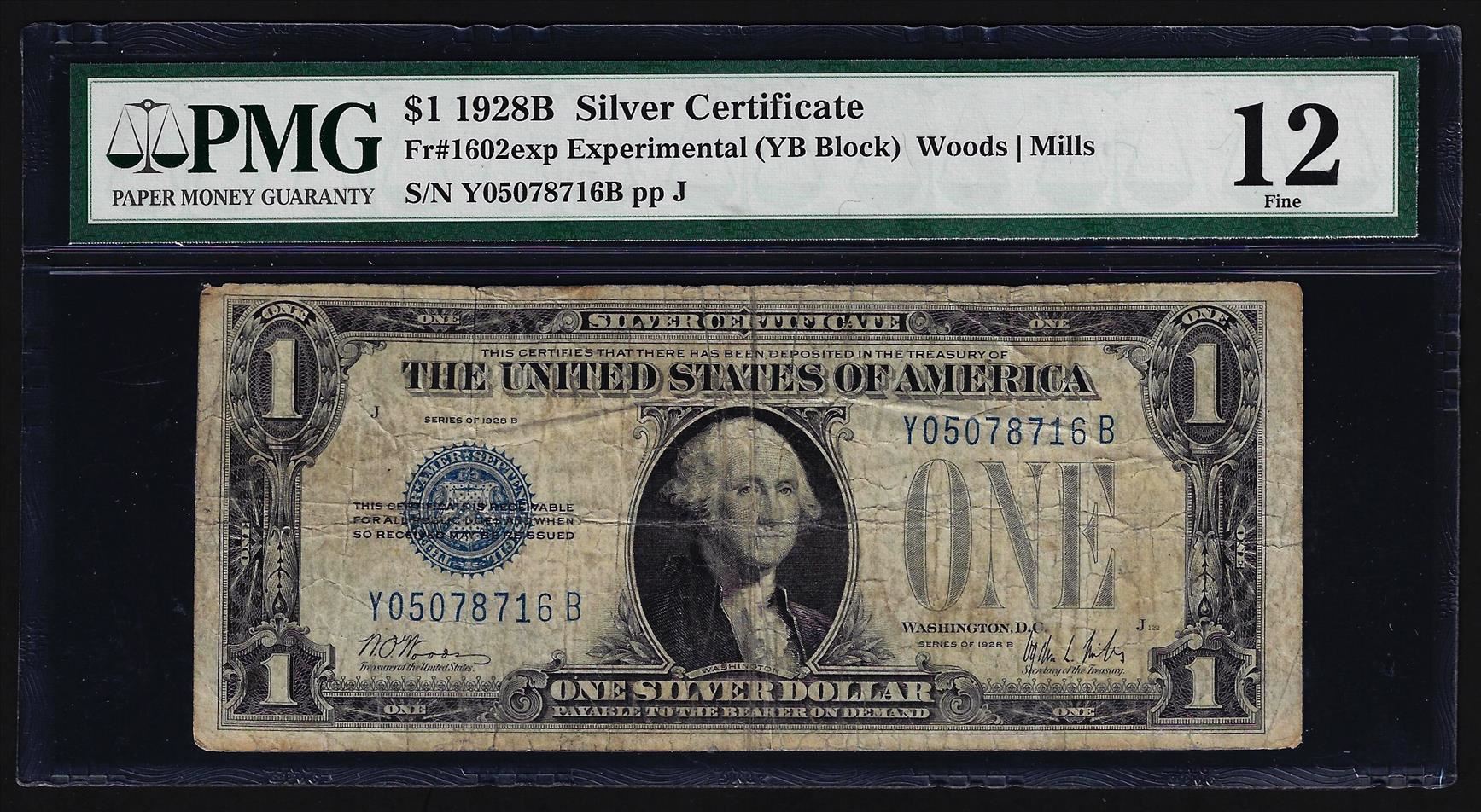 1928B $1 Silver Certificate Funny Back Experimental Note PMG F12