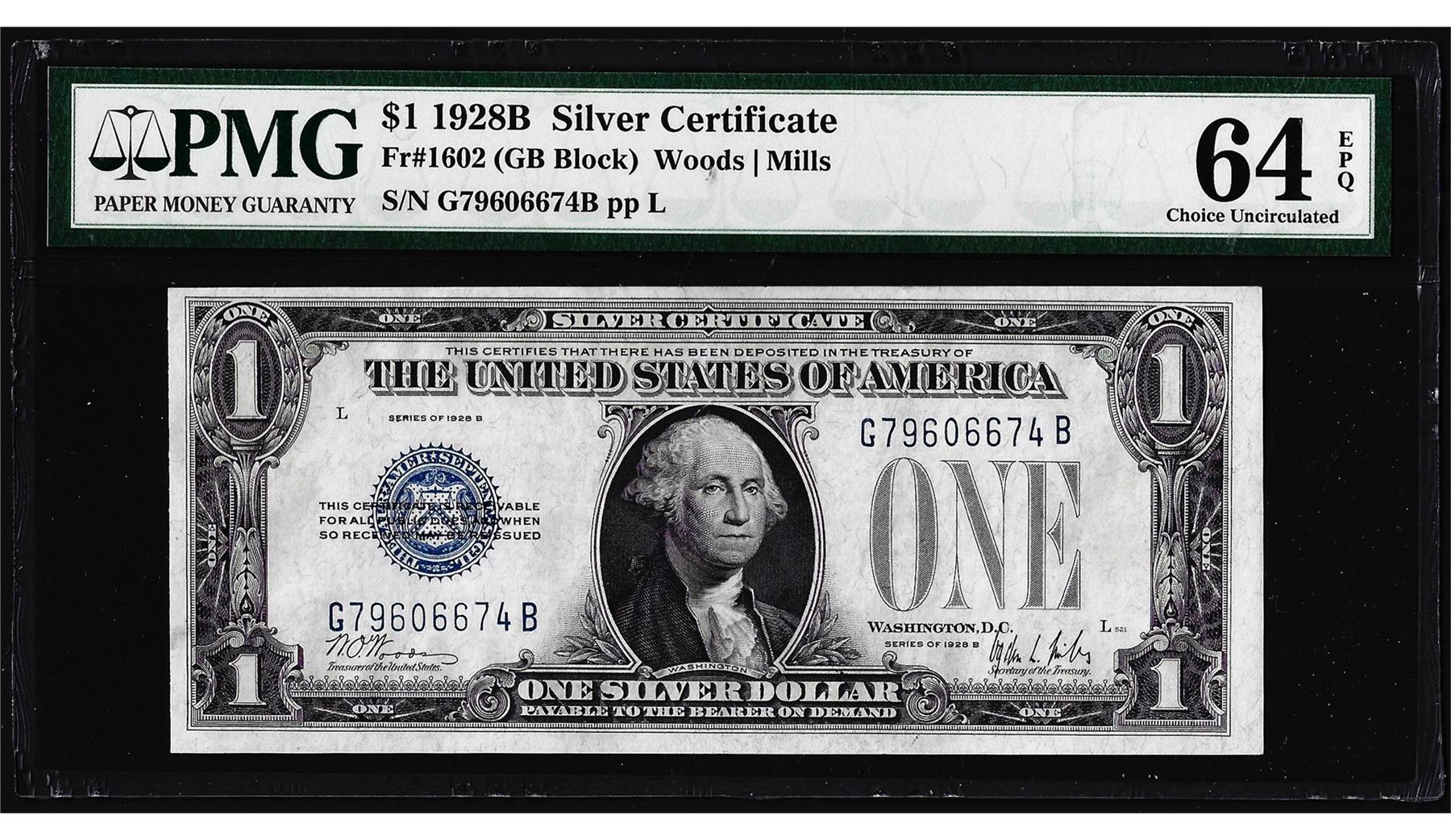 1928B $1 Silver Certificate Note Fr.1602 PMG Choice Uncirculated 64EPQ
