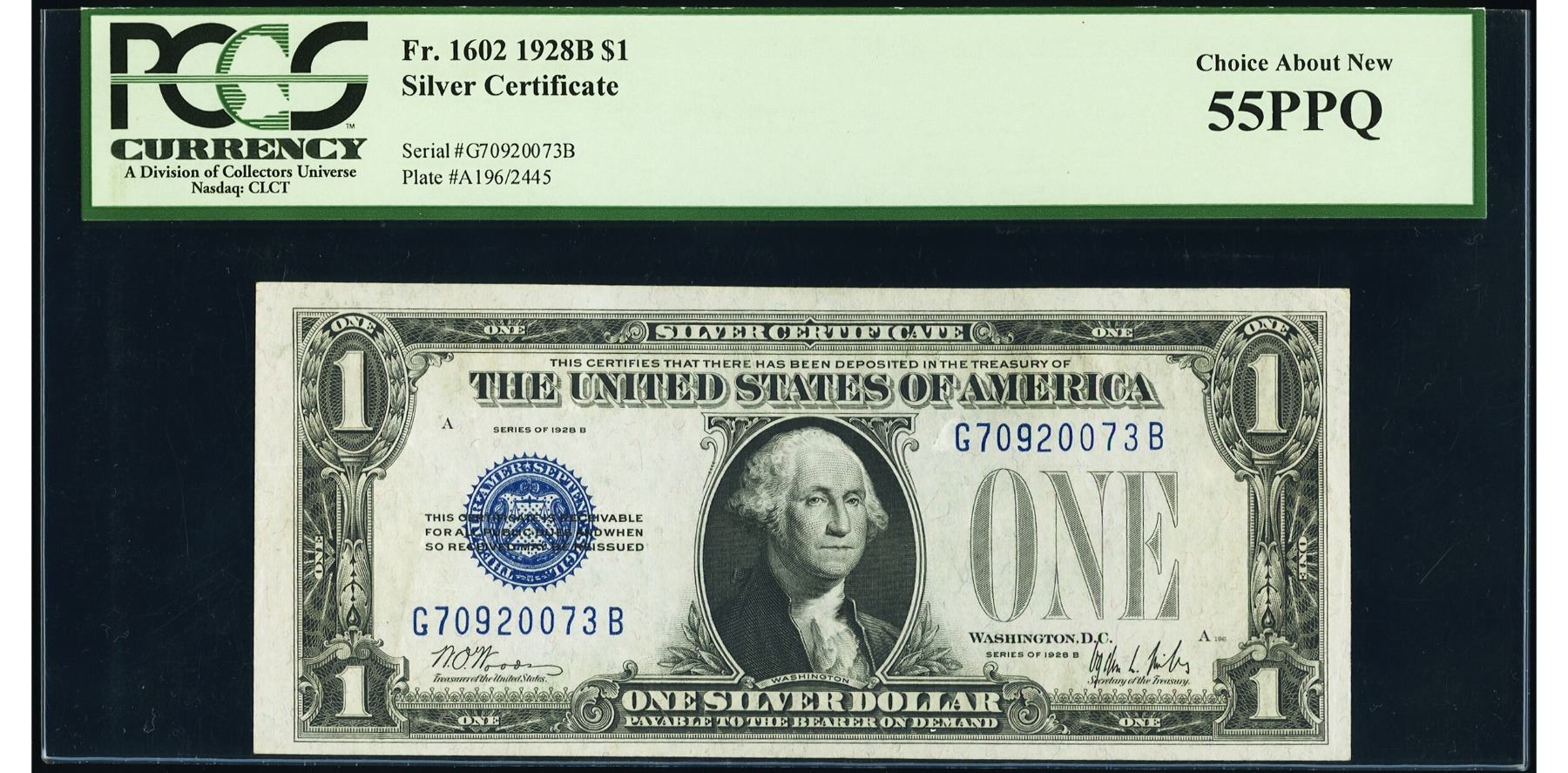 One 1928B $1 Silver Certificate PCGS 55PPQ.