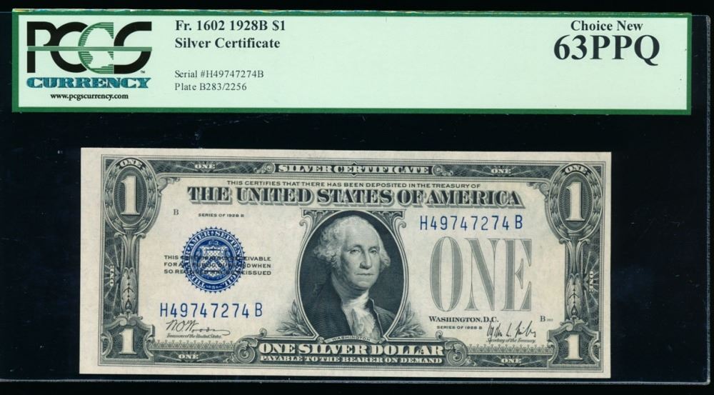 One 1928B $1 Silver Certificate PCGS 63PPQ.