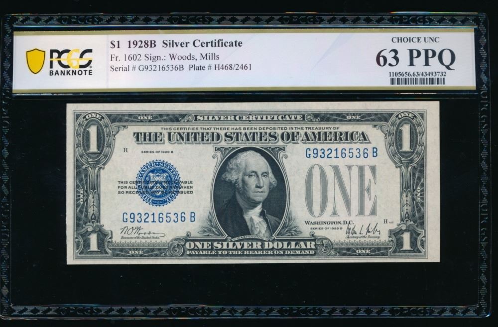 One 1928B $1 Silver Certificate PCGS 63PPQ.