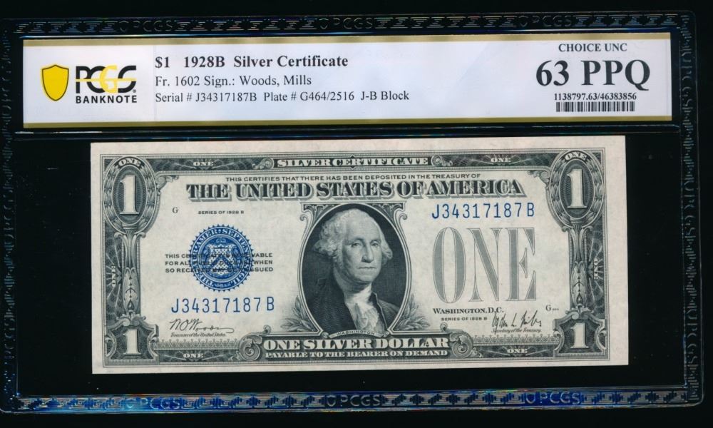 One 1928B $1 Silver Certificate PCGS 63PPQ.