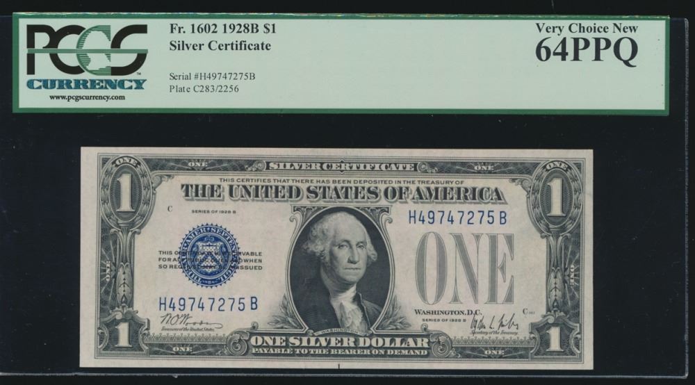 One 1928B $1 Silver Certificate PCGS 64PPQ.