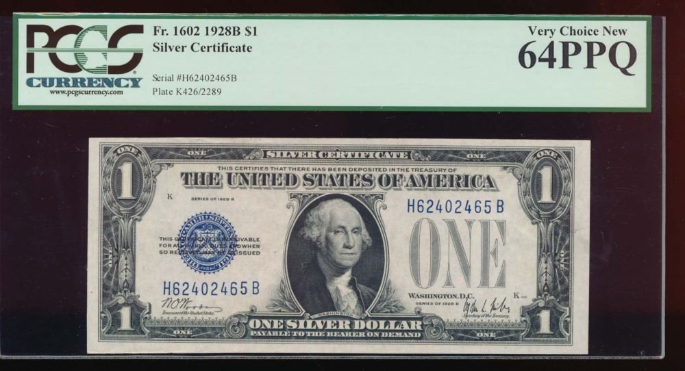 One 1928B $1 Silver Certificate PCGS 64PPQ.