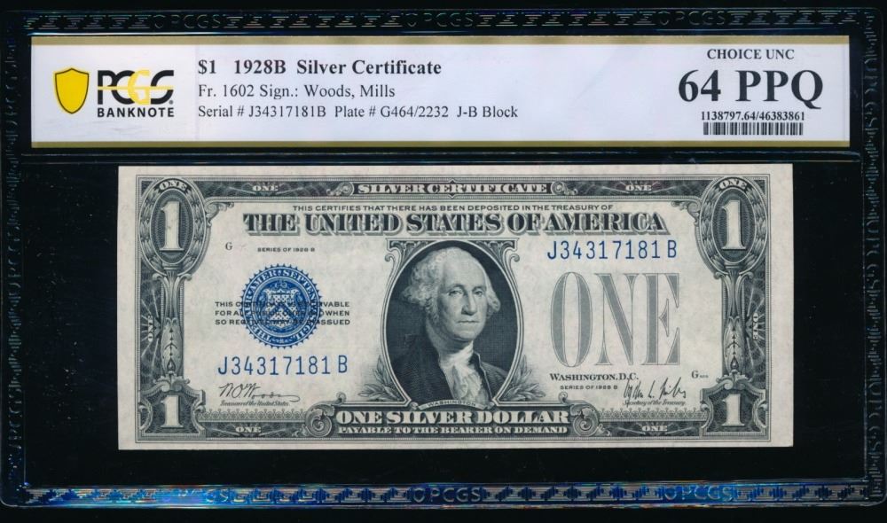 One 1928B $1 Silver Certificate PCGS 64PPQ.