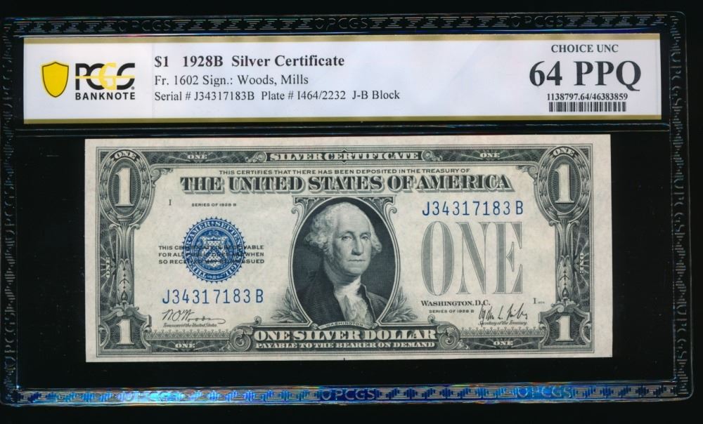 One 1928B $1 Silver Certificate PCGS 64PPQ.