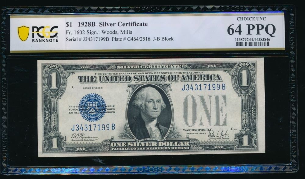 One 1928B $1 Silver Certificate PCGS 64PPQ.