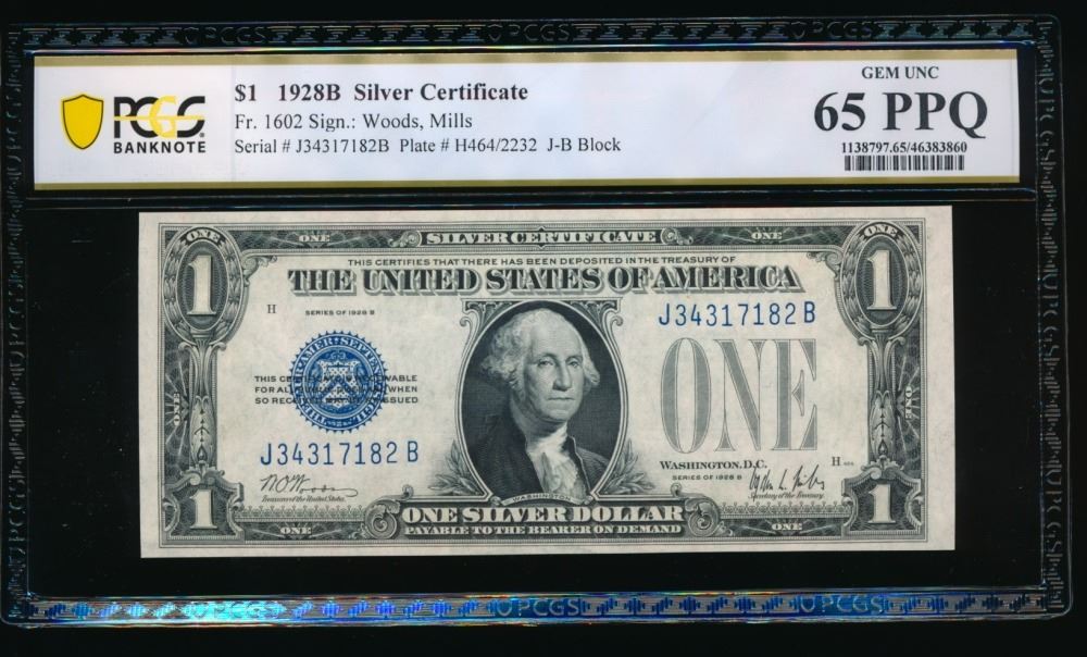 One 1928B $1 Silver Certificate PCGS 65PPQ.