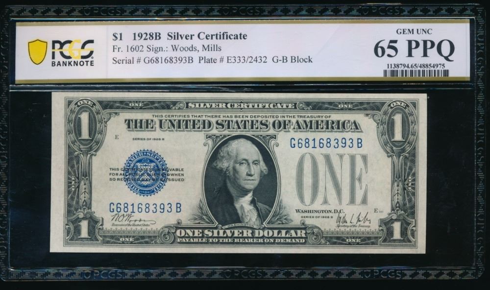 One 1928B $1 Silver Certificate PCGS 65PPQ.