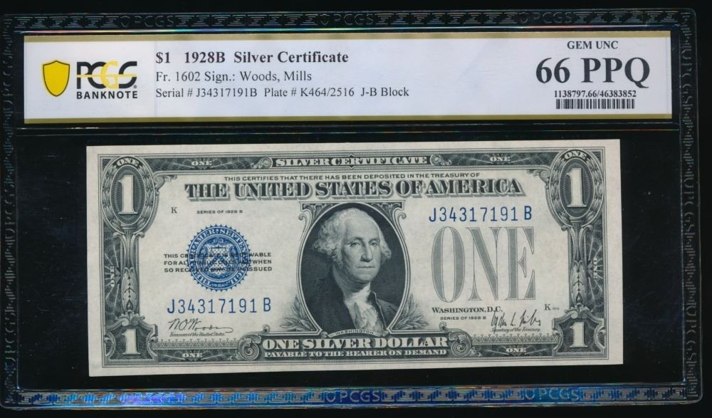 One 1928B $1 Silver Certificate PCGS 66PPQ.