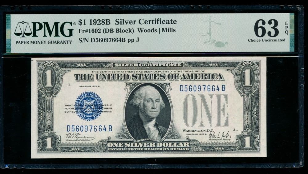 One 1928B $1 Silver Certificate PMG 63EPQ.
