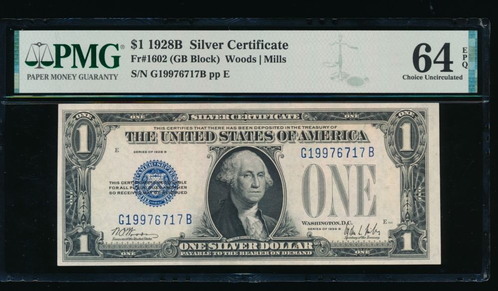 One 1928B $1 Silver Certificate PMG 64EPQ.