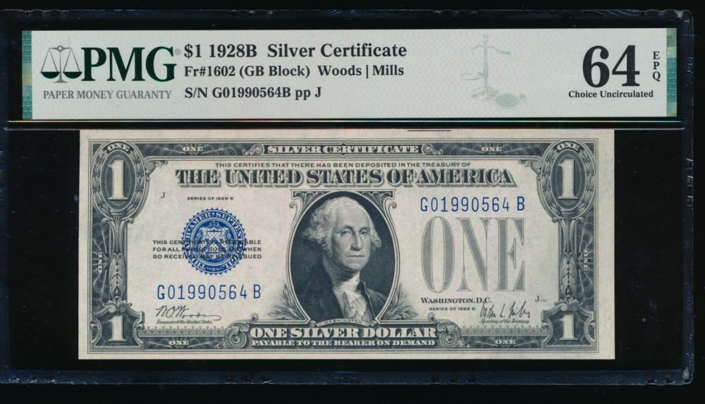 One 1928B $1 Silver Certificate PMG 64EPQ.