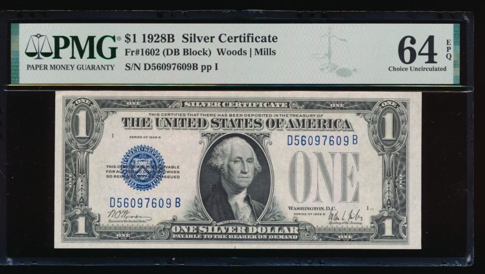 One 1928B $1 Silver Certificate PMG 64EPQ.