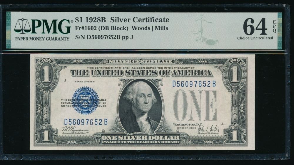 One 1928B $1 Silver Certificate PMG 64EPQ.
