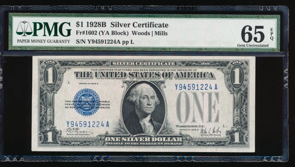 One 1928B $1 Silver Certificate PMG 65EPQ.