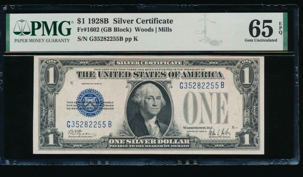 One 1928B $1 Silver Certificate PMG 65EPQ.