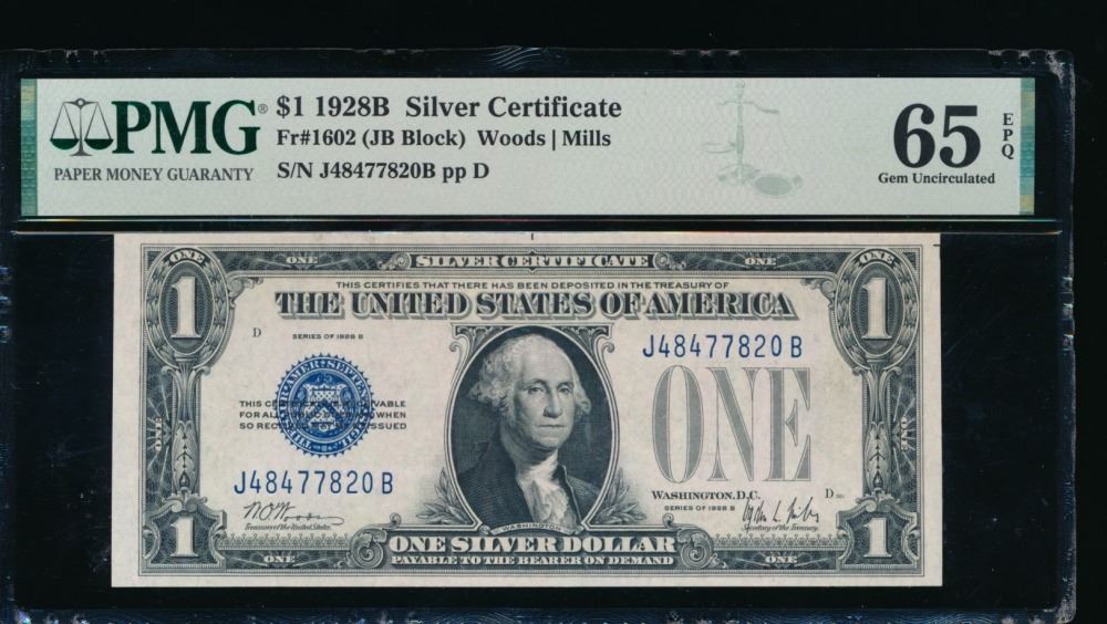 One 1928B $1 Silver Certificate PMG 65EPQ.