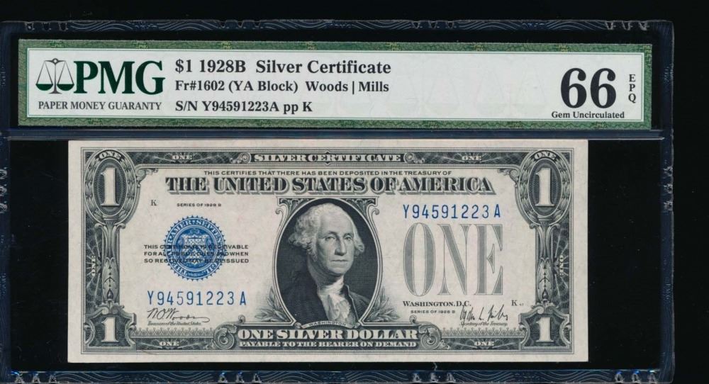 One 1928B $1 Silver Certificate PMG 66EPQ.