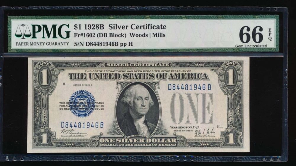 One 1928B $1 Silver Certificate PMG 66EPQ.