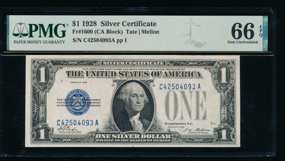 One 1928B $1 Silver Certificate PMG 66EPQ.
